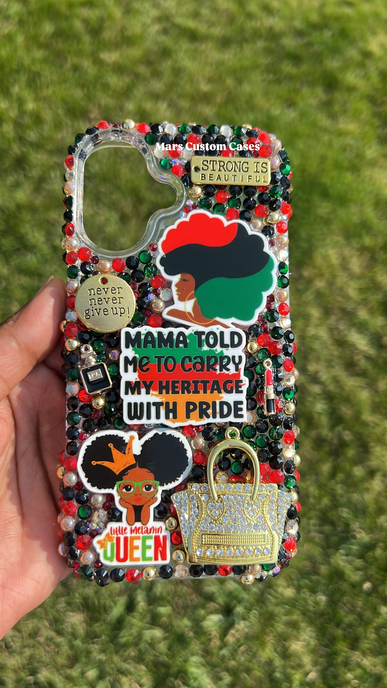 Celebrate your heritage with our custom phone case, adorned with empowering messages and vibrant colors. This unique design features a mix of red, green, black and gold beads, along with inspirational quotes and graphics that reflect African American culture. The case is made from high quality material and is designed to fit YOU.