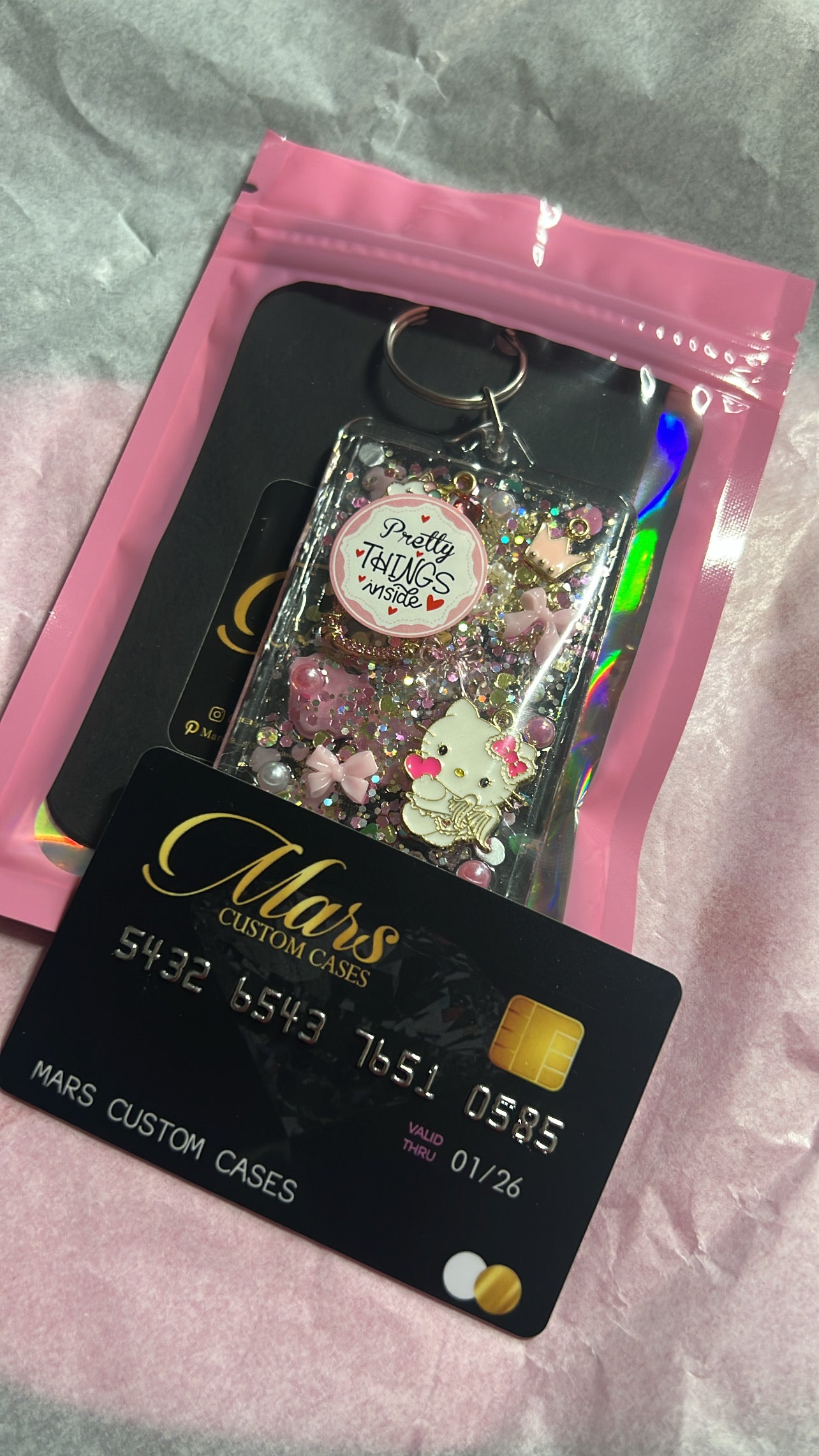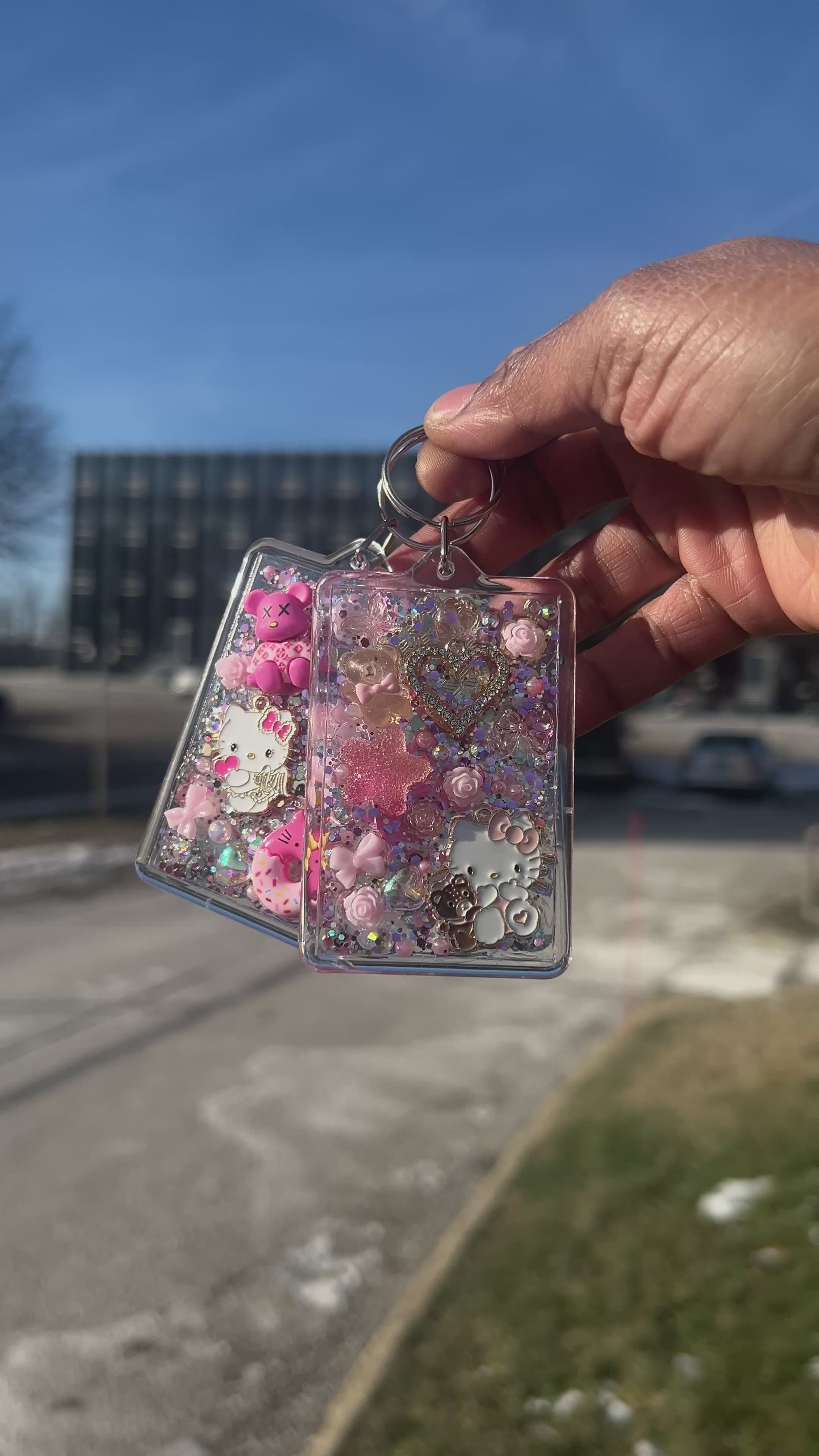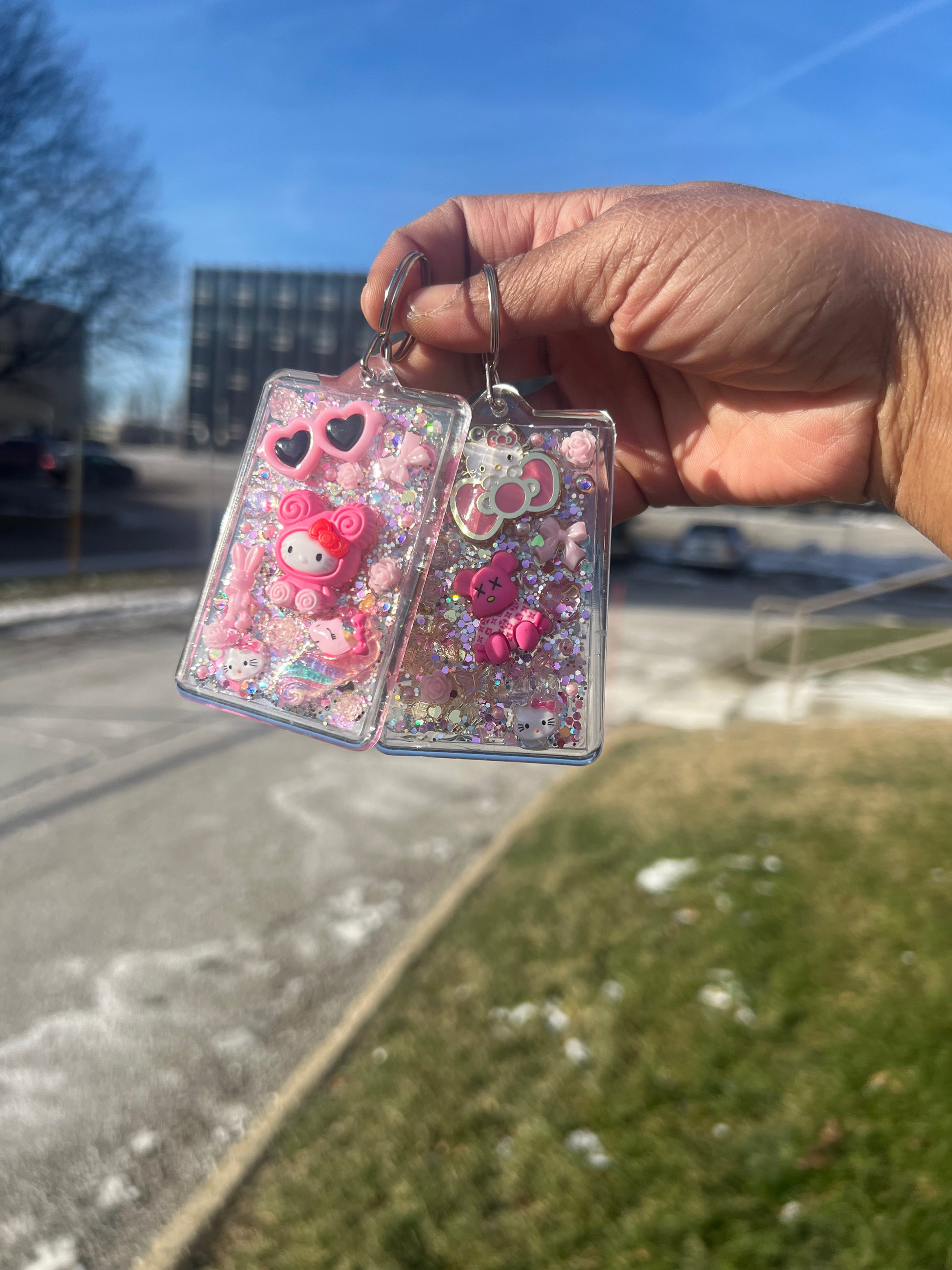 There one of a kind keychains are super girly and cute. Made with glitter, and one of a kind charms.