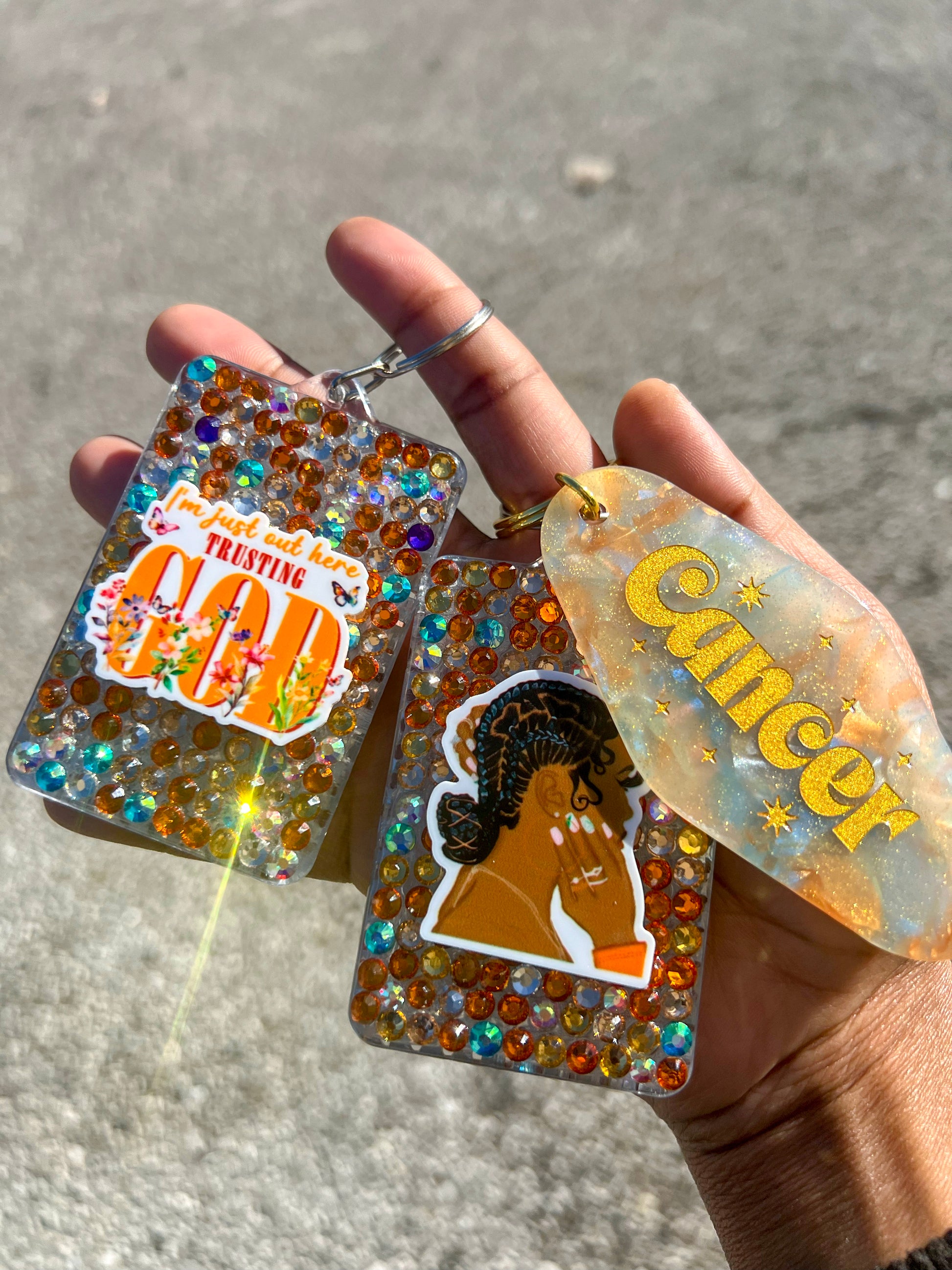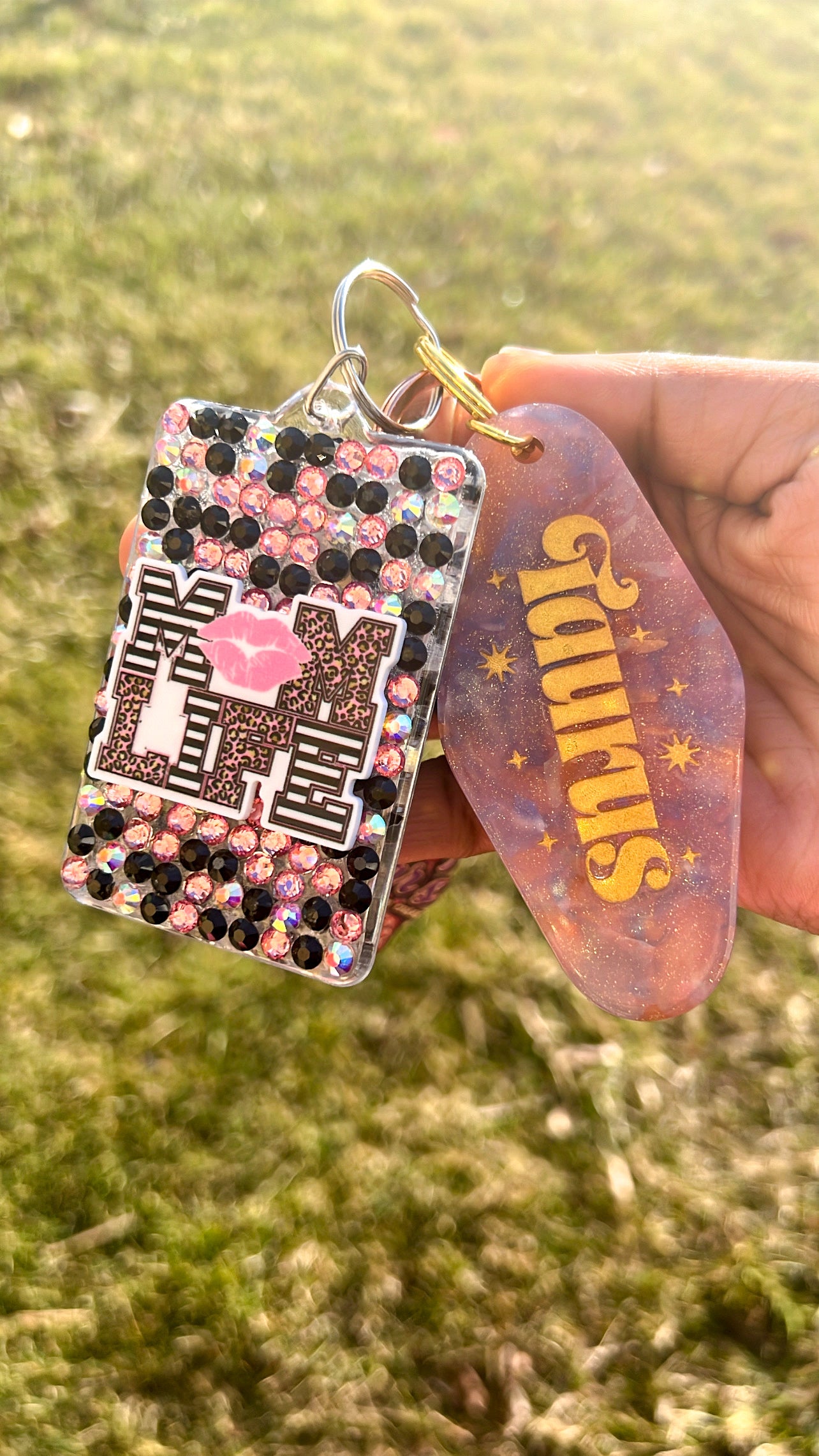 Add a touch of personality to your keychain with our Zodiac Keychains. Whether you're looking to complete your collection or just want to represent your zodiac sign, these keychains are the perfect addition. Choose from all 12 zodiac signs and add it to your cart. For an extra touch of sparkle, opt for our Blinged Keychain. Please note that all sales are final, so make sure to choose your sign carefully. Shop now and show off your zodiac pride with our Zodiac Keychains.